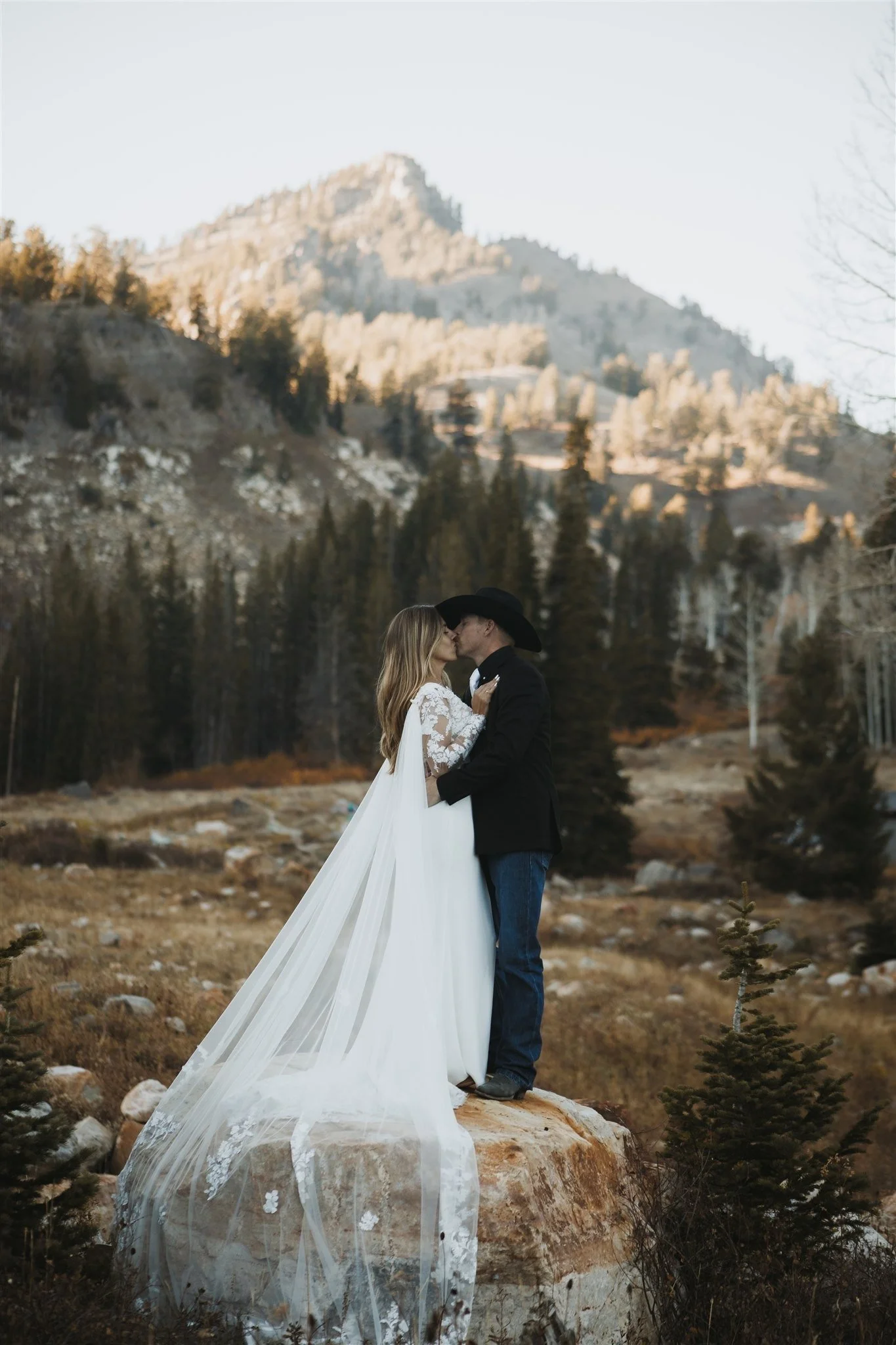 Totally depends! Some couples hike in their wedding gear, others change once we get there—it really comes down to your outfit, the trail, and how comfortable you are. Good hiking shoes are a must either way! And no worries, I’ve got a pop-up tent for changing if you’d rather have a little privacy at the viewpoint.